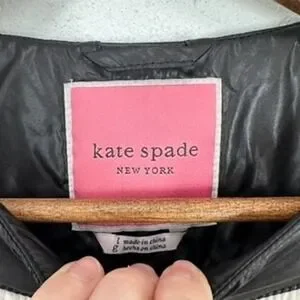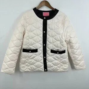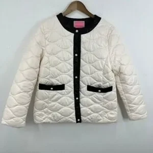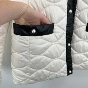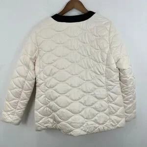 Kate Spade New York Quilted Puffer Jacket Ivory Black Trim Pearl Buttons Size L