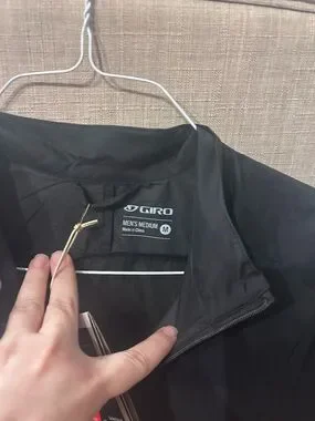 Lightweight windbreaker made for cycling. Full-length front zipper for easy venting. Form-fitting cut improves mobility. High collar offers added wind protection. Subtle Giro logo on chest.