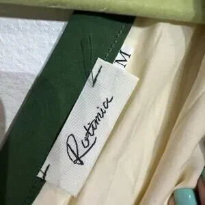 Medium green and cream dress by Rotimia in excellent preowned condition.
