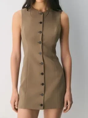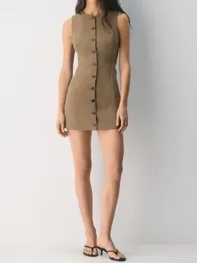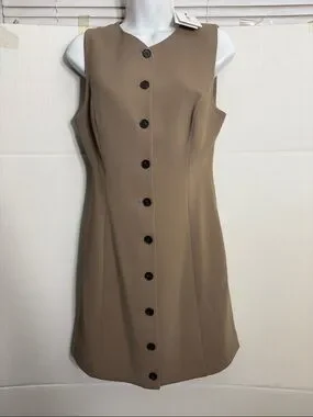 Aritzia Tan Sleeveless Button-Front Shift Dress Regal Dress 4641