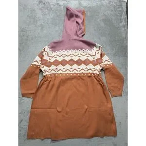 Torrid Sweater Womens 3X 22-24 Pink Brown Hooded Anorak Aztec Cardigan