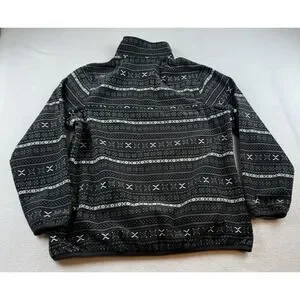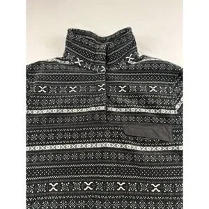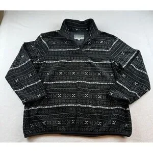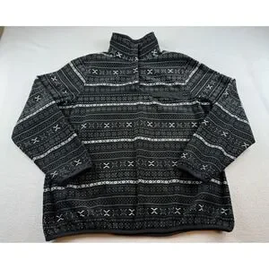 Jachs Cabin Fair Isle 1/4 Snap Pullover Black White Women's Size L EUC Cozy