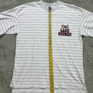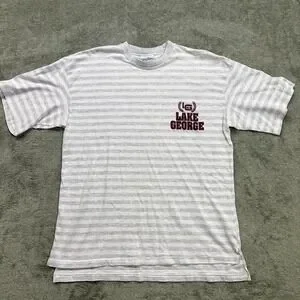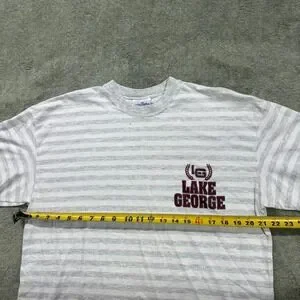 Vintage Mens T-shirt, Lake George, Velva Sheen, L/XL, grey and white stripe