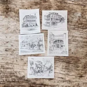 Enhance your space with these charming black and white Historical Sketches Note Cards.