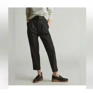 NEW EVERLANE Tencel Way High Taper Pant 4 Black Pleated Front Career Minimalist