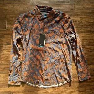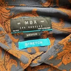 NWT MBX Men's Medium Western Floral Button Down Long Sleeve Shirt Stretch Rayon