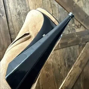 Light wear throughout-some residue/discoloration on suede, light surface scratches on heels and are not noticeable, wear on soles, scuffs on tip of shoes
