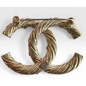 CHANEL Gold Twisted Interlocking CC Brooch