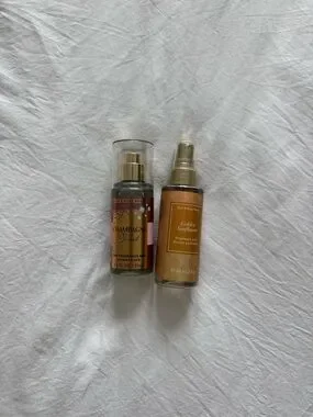 Two Bath & Body Works fragrance mists. Champagne Toast and Golden Sunflower scents. Sleek spray bottles with metallic accents. Perfect for daily refresh or gifting.