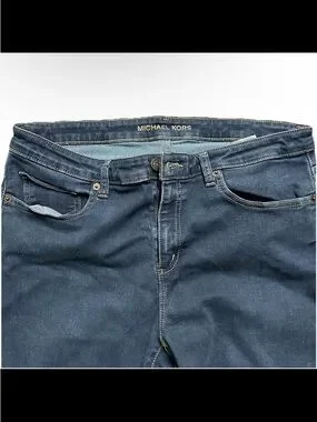 Michael Kors women's dark blue skinny jeans. Comfortable stretch denim with a flattering slim fit. Classic five-pocket styling and versatile dark blue color for everyday wear. Easy to pair with tees and blouses.