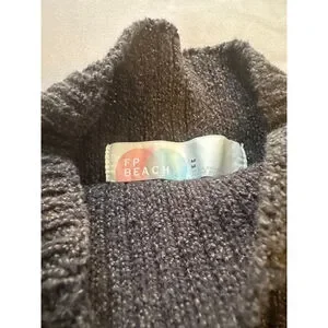 Pre-owned Free People "FP Beach" sleeveless turtleneck sweater in dark gray. The soft, knitted fabric has a ribbed texture. Features include a mock neck and relaxed fit.
