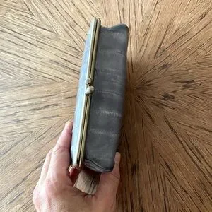 Vintage Eel Skin Gray Leather Clutch Purse with Kiss Lock & Mirror / Wallet