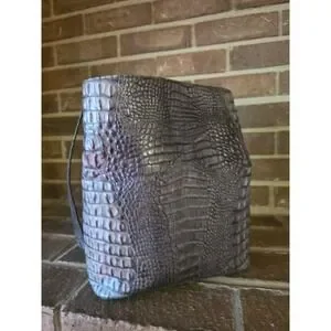 Brahmin Large Amelia Gray Melbourne Leather Bucket Bag. Excellent Used Condition