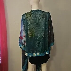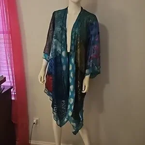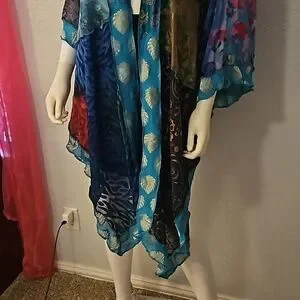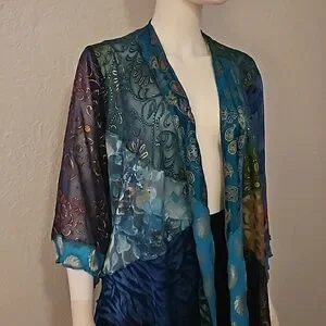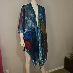 STERLING STYLES 1990s Mixed Print Metallic Patchwork Assymetric Kimono
