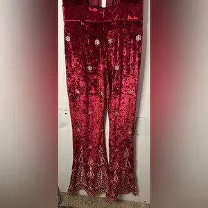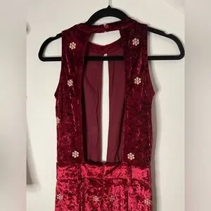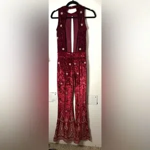 LENNI The Label Chromatic Velvet Jumpsuit in Wine Red Size XS