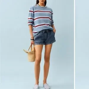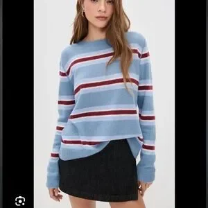 This is a fine-gauge recycled cashmere blend sweater knit - 95% Recycled Cashmere, 5% Cashmere. Hand wash + dry flat.