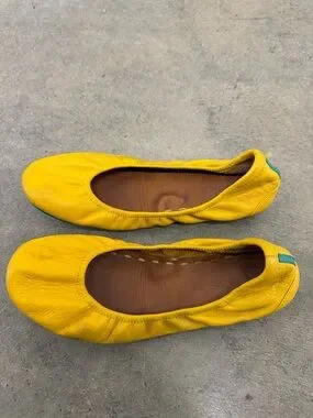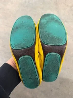 Tieks Yellow Leather Ballet Flats with Teal Heel Tab