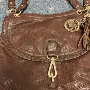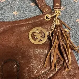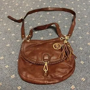 Michael Kors Brown Leather Flap Top Brown Crossbody Shoulder Bag Tassel Clip