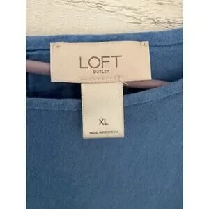 LOFT Outlet Blue Linen Blend Top XL Scalloped Hem Lightweight
