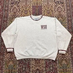 VTG 90s GFS Washington State Cougars WSU Crewneck Ringer Sweatshirt XXL Gray