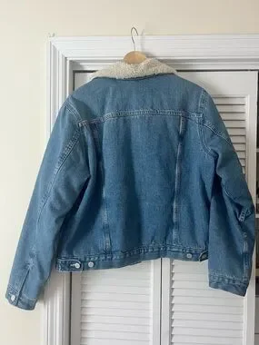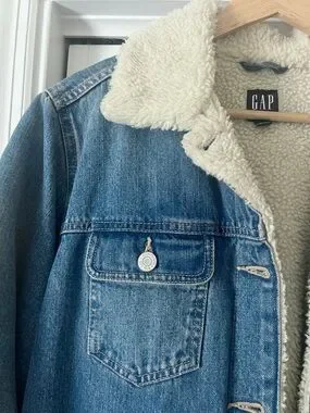 GAP Sherpa Lined Denim Jacket Trucker Jean Jacket Cozy Fleece Lined Blue Size L
