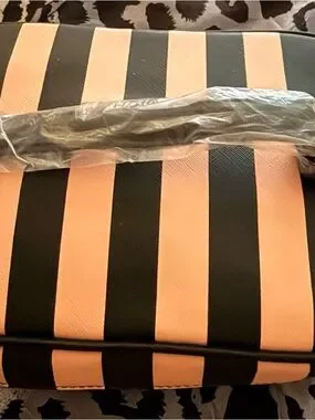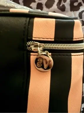 Victoria's Secret Pink and Black Striped Cosmetic Case NWT