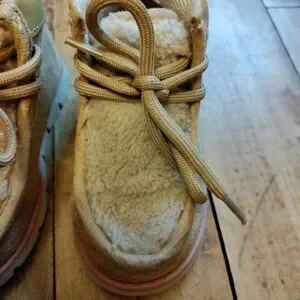 Oshkosh boots size 5 tan girls Sherpa detail pink stripe to sole