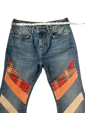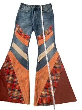 Free People We The Free Flashback Patchwork Plaid Corduroy Flare Jeans NWOT