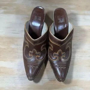 Frye Phoenix Dark Brown Leather Mules Women’s Size 7.5