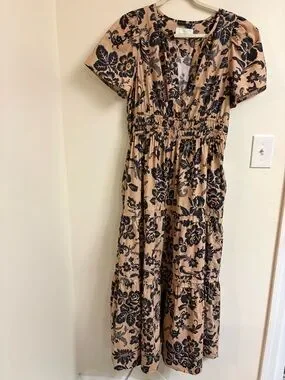 One of Anthropologie’s most loved and bestselling styles, the Somerset Maxi Dress is a must-have for effortless, feminine style. This version features a gorgeous black & tan/camel floral print on breathable 100% cotton—perfect for spring, summer, and layering into fall.