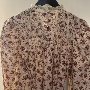 Doen Cream Maxi Dress with Burgundy Floral Print and Lace Trim