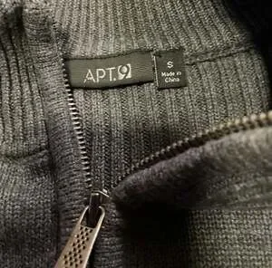 Features include a ribbed mock neck collar, ribbed cuffs, and a ribbed hem for a secure fit. The 1/4 zip design makes it perfect for layering over a collared shirt or t-shirt. Good pre-owned condition with no stains, but with a hole in the armpit area but no significant pilling. Ideal for casual office wear or fall/winter style.