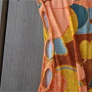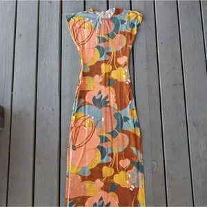 Zara Colorful Retro Floral Maxi Dress, Multicolored Knit Side Cutout Small Size