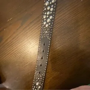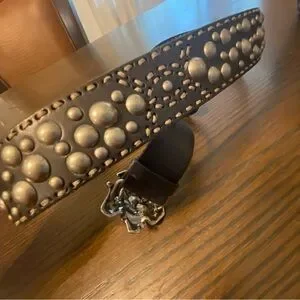 Vintage Betsey Johnson genuine leather belt with gunmetal rose buckle, silver studs, and contrast stitching. Excellent condition! Women’s size medium M