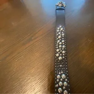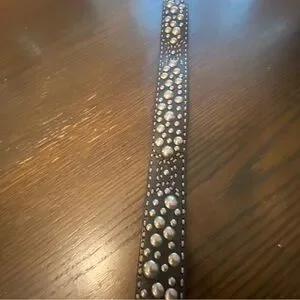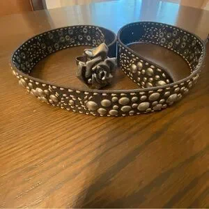 Y2K RARE Betsey Johnson Black & Silver Studded Rose Leather Belt Size Medium