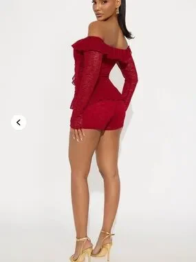 Fashion Nova Red Off-Shoulder Ruffle Romper