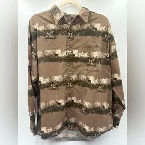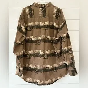 Cabela’s Outfitters Series Deer Hunting Print Button Shirt Mens L Brown Outdoors