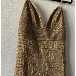 NEW FREE PEOPLE X SAYLOR Sz X-Small FRANKIE SEQUIN MESH MINI SLIP DRESS Gold