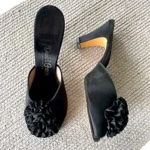 Vintage Daniel Green Black Satin Pom Pom Detail Heeled Mules Fits Size 8 Narrow