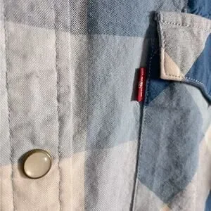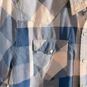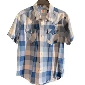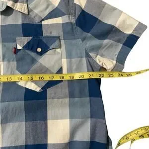 Levi’s Shirt Mens L Blue Checkered Short Sleeve Pearl Snap Western Cowboy Casual