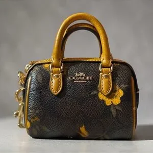 Coach Mini Rowan Bag Charm in Signature Canvas with Floral Print, NWT