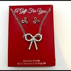 GENUINE Crystal 18 1/2 “ Pendant and Earring Set