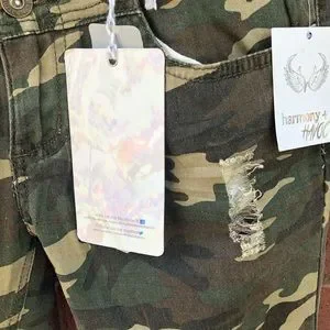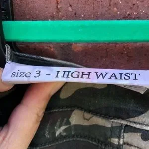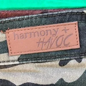 Amazing harmony and havoc new with tags green camouflage high waisted skinny distressed jeans. 3 button waist with zipper fly and belt loops. Machine washable. Brand new with tags attached.