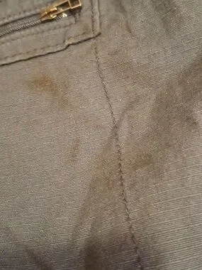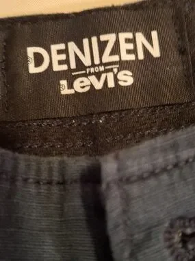 GUC blue cargo shorts by Levi's. Excellent condition aside from dark stain on right leg. Last picture shows stain fairly exaggerated, but the actual stain is nearly the same color as the shorts. No damage. Size 30, true to size