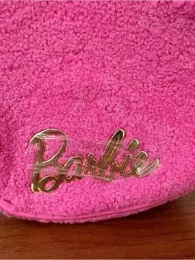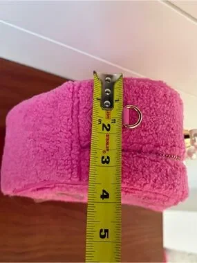 product is a Barbie Heart Figural Pink Fuzzy Purse Bag by Mattel. The purse features a heart-shaped design with a pink exterior color and faux sherpa material, making it a stylish and unique accessory. The top handle bag is adorned with pearls as accents, adding a touch of elegance to the overall look. NWOT - the gold accents still have the clear protective sticker but no tags. Please note the long strap is not included.
