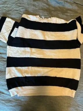 NWT Free People Harlow Cashmere Sweater Tee Black White Striped
