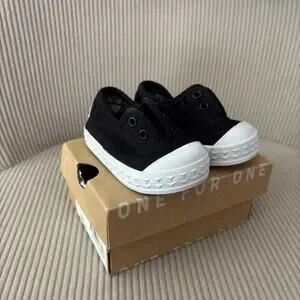 Toms Shoes Tiny Baby Black Canvas Sneakers Slip On 3C