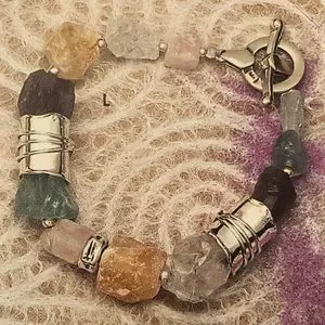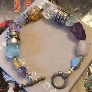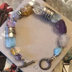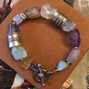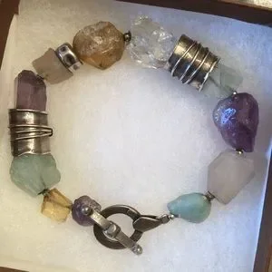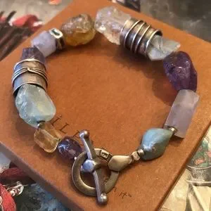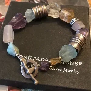 Rare Vintage Silpada Citrine, Flourite, Crystal, Amethyst and Rose Quartz Bracelet With Silver Tubes and Gold-Filled Beads and a Toggle Clasp B0710. Measures 7 1/2” long. Breathtaking and extremely rare piece!