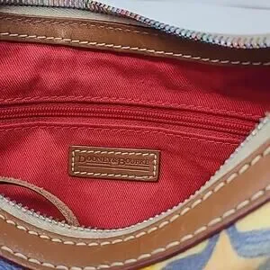 VTG Dooney & Bourke Logo Graffiti Pochette rainbow purse handbag 10" wide 7" tall