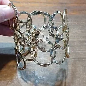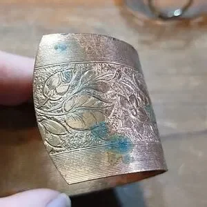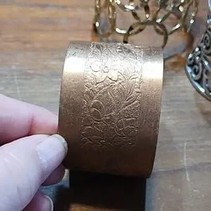Three Cuff Style Bracelets, Etched Copper, Filigree Gold & Silver Colour